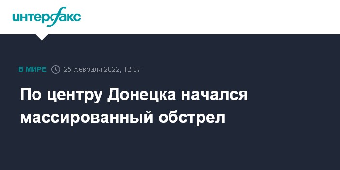 Москва. 25 февраля. INTERFAX.RU - Массированный артиллерийский обстрел ведется в пятницу по центру Донецка, сообщили "Интерфаксу" очевидцы.