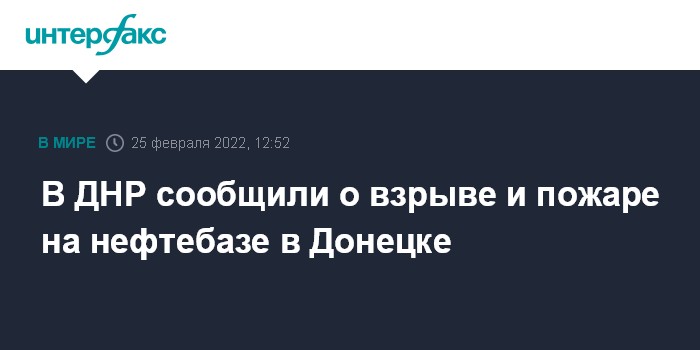 Москва. 25 февраля. INTERFAX.RU - Нефтебаза в Донецке взорвана в результате артудара по городу, сообщает представительство Донецкой народной республики в Совместном центре контроля и координации режима прекращения огня (СЦКК).