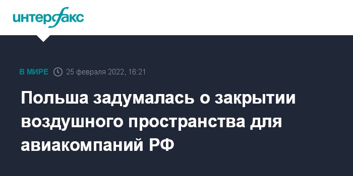 Москва. 25 февраля. INTERFAX.RU - Власти Польши готовы закрыть воздушное пространство страны для гражданской авиации России.