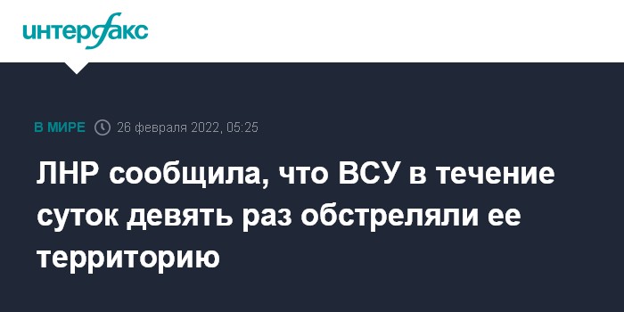 Москва. 26 февраля. INTERFAX.RU - Количество ударов по территории Луганской народной республики со стороны украинских военных за минувшие сутки снизилось более чем втрое, сообщили "Интерфаксу" в представительстве ЛНР в Совместном цен ре по контролю и координации (СЦКК).