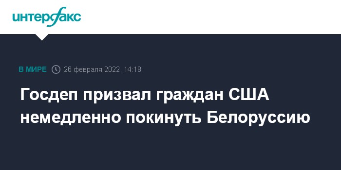 Американских граждан предупредили, что в связи с российской военной операцией на Украине "наблюдается повышенная напряженность в регионе, ситуация непредсказуема, а режим работы минского аэропорта и сухопутной границы Беларуси могут измениться без уведомления".