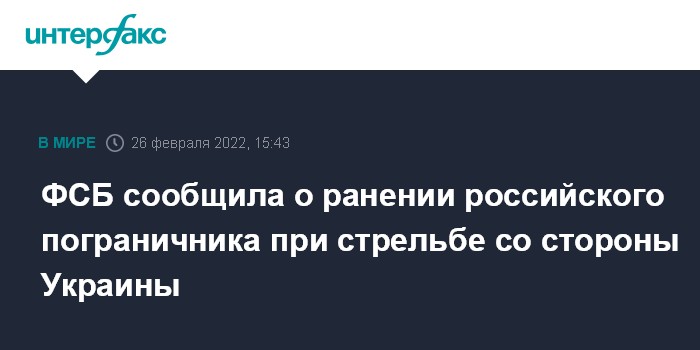 Москва. 26 февраля. INTERFAX.RU - Военнослужащий ВСУ расстрелян украинскими националистами при попытке уйти в РФ на границе в минувшую пятницу, ранение получил сотрудник российской погранслужбы, сообщили "Интерфаксу" в субботу в Центре общественных связей (ЦОС) ФСБ.