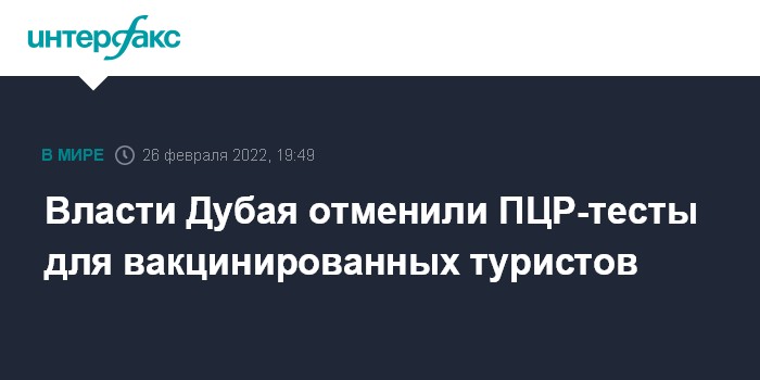 До 26 февраля эмират Дубай принимал всех туристов при условии предоставления отрицательного ПЦР-теста. При этом при въезде в Дубай сохраняется требование сдачи бесплатного ПЦР-теста и самоизоляции до получения отрицательного результата. Детям в возрасте до 12 лет ПЦР-тест не требуется.