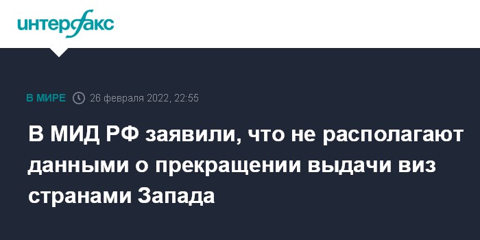 В МИД РФ заявили, что не располагают данными о прекращении выдачи виз странами Запада