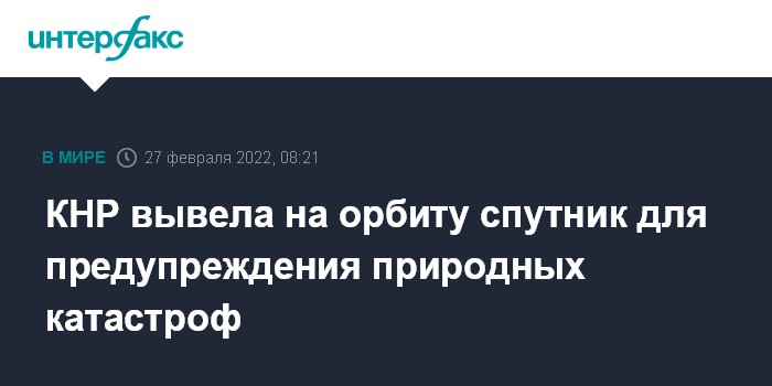 КНР вывела на орбиту спутник для предупреждения природных катастроф