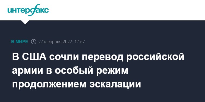 "Высшие должностные лица ведущих стран НАТО допускают агрессивные высказывания в адрес нашей страны, поэтому приказываю министру обороны и начальнику Генерального штаба перевести силы сдерживания российской армии в особый режим несения боевого дежурства", - сказал Путин 27 февраля на встрече с министром обороны Сергеем Шойгу и начальником Генштаба ВС России Валерием Герасимовым.