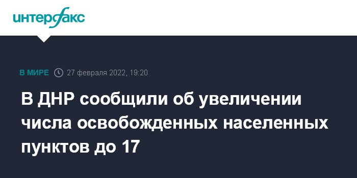 По состоянию на 27 февраля, по его словам, подразделениями ДНР всего освобождено 17 населенных пунктов, ранее находившееся под контролем украинской армии в Донбассе: Павлополь, Пищевик, Викторовка, Богдановка, Новогнатовка, Николаевка, Рыбинское, Трудовское, Васильевка, Прохоровка, Старогнатовка, Свободное, Донское, Анадоль, Андреевка, Гнутово и Гранитное.
