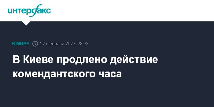 Москва. 27 февраля. INTERFAX.RU - Мэр Киева Виталий Кличко подчеркивает, что комендантский час в столице продолжит действовать, и его нужно строго соблюдать.