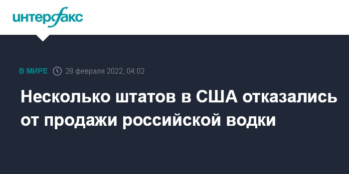Москва. 28 февраля. INTERFAX.RU - Несколько штатов США приняли решение снять с продажи российскую водку из-за военной операции РФ на Украине, сообщает CNN.