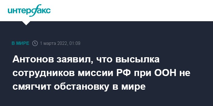 Антонов заявил, что высылка сотрудников миссии РФ при ООН не смягчит обстановку в мире