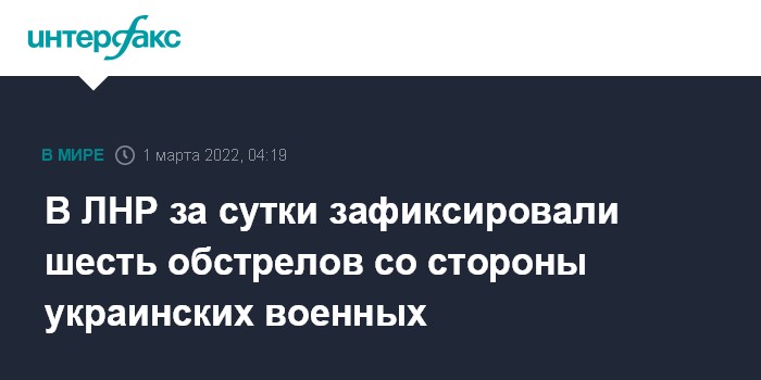 Москва. 1 марта. INTERFAX.RU - За сутки три населенных пункта Луганской народной республики подверглись обстрелам шесть раз, сообщает представительство республики в совместном центре по контролю и координации.