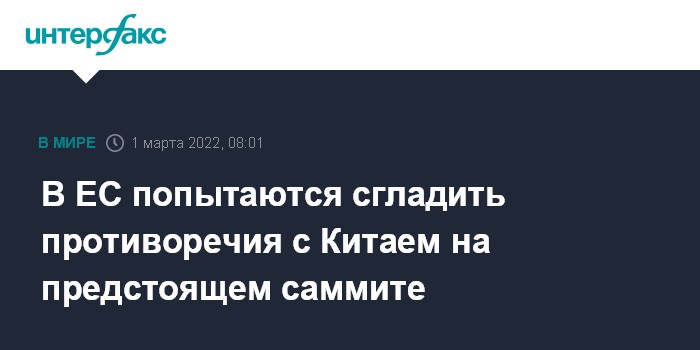 Москва. 1 марта. INTERFAX.RU - Евросоюз на саммите с Китаем приложит усилия к тому, чтобы сгладить существующие между сторонами противоречия, в том числе в сфере политики, заявил в Европарламенте вице-президент Европейской комиссии и глава торговой палаты ЕС Валдис Домбровскис.