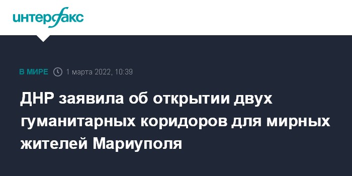 ДНР заявила об открытии двух гуманитарных коридоров для мирных жителей Мариуполя