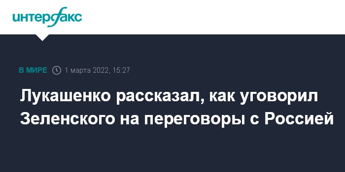 Москва. 1 марта. INTERFAX.RU - Президент Белоруссии Александр Лукашенко рассказал, как сложно ему было договориться об украинско-российских переговорах с украинским коллегой Владимиром Зеленским.