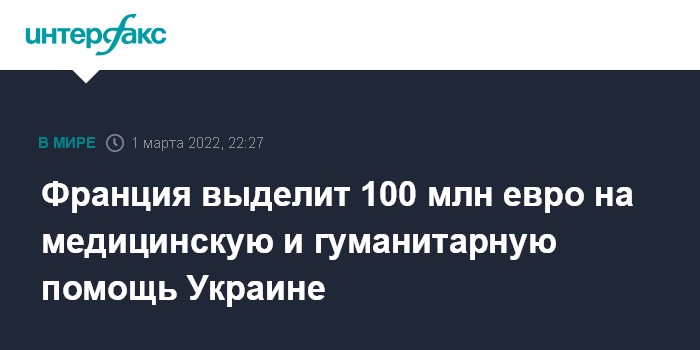 Франция выделит 100 млн евро на медицинскую и гуманитарную помощь Украине