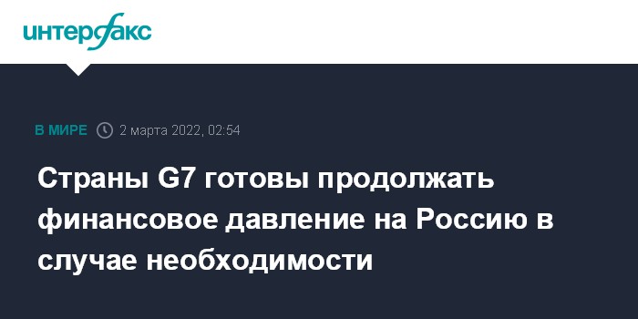 Страны G7 готовы продолжать финансовое давление на Россию в случае необходимости