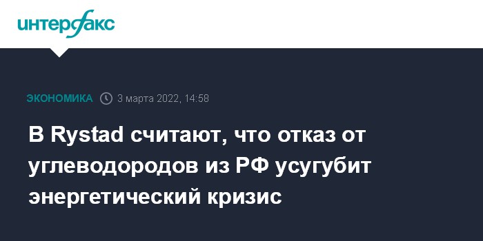 В Rystad считают, что отказ от углеводородов из РФ усугубит энергетический кризис