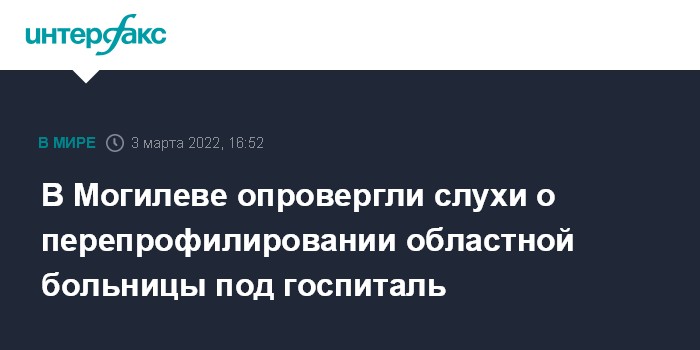 Москва. 3 марта. INTERFAX.RU - В Могилевской областной больнице опровергли слухи о перепрофилировании клиники под госпиталь для лечения раненых.