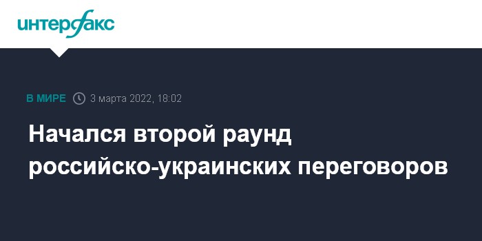 Москва. 3 марта. INTERFAX.RU - Второй раунд переговоров начался между российской и украинской стороной в Брестской области Белоруссии.