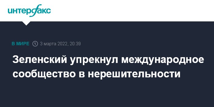 Зеленский упрекнул международное сообщество в нерешительности