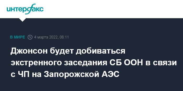 Джонсон будет добиваться экстренного заседания СБ ООН в связи с ЧП на Запорожской АЭС