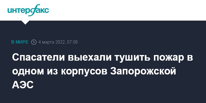 Москва. 4 марта. INTERFAX.RU - Спасатели ГСЧС Украины с утра пятницы выехали на тушение пожара в учебно-тренировочном корпусе на Запорожской АЭС.