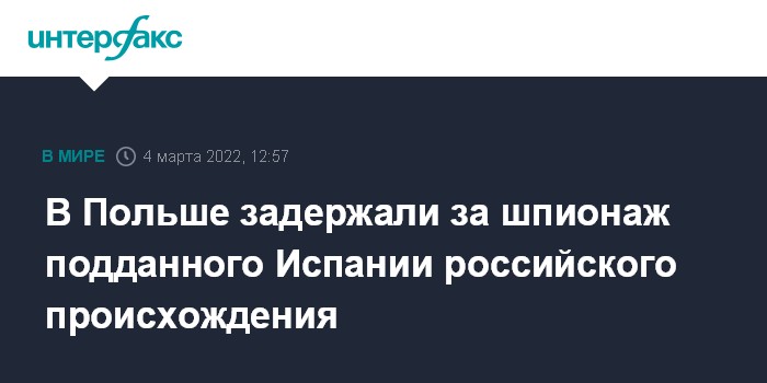 В Польше задержали за шпионаж подданного Испании российского происхождения