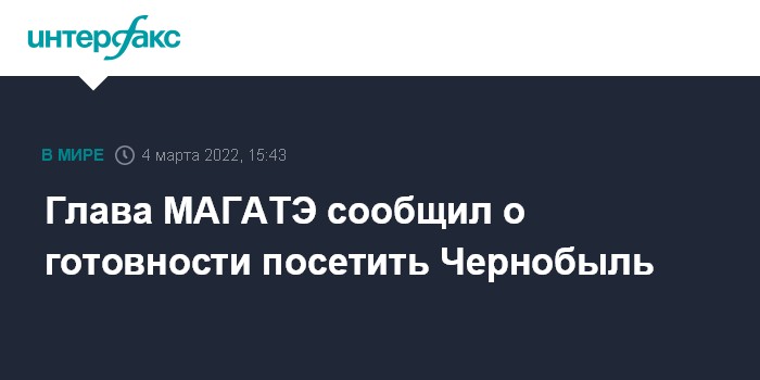 Москва. 4 марта. INTERFAX.RU - Гендиректор Международного агентства по атомной энергии (МАГАТЭ) Рафаэль Гросси заявил, что готов посетить Чернобыль.