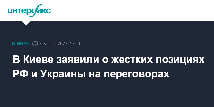 В Киеве заявили о жестких позициях РФ и Украины на переговорах