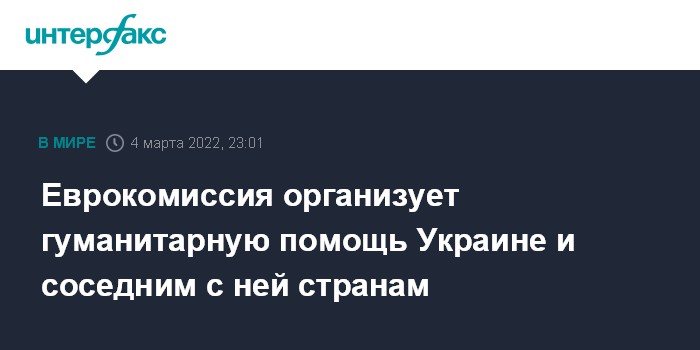 Москва. 4 марта. INTERFAX.RU - Европейская комиссия (ЕК) сообщила, что продолжает работать на всех уровнях, чтобы направить гуманитарную помощь и помощь по линии гражданской защиты на Украину и в соседние с ней страны.