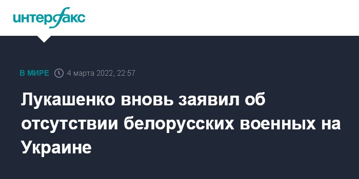 Ранее Лукашенко заявлял, что белорусская армия не участвовала и не собирается участвовать в спецоперации на Украине.