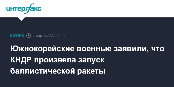 Москва. 5 марта. INTERFAX.RU - КНДР выпустила баллистическую ракету в сторону Японского моря в субботу, сообщили военные Южной Кореи.
