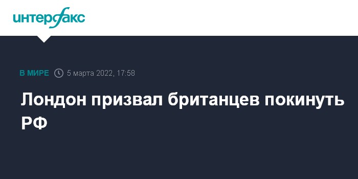 Москва. 5 марта. INTERFAX.RU - Правительство Великобритании настоятельно рекомендует подданным королевства покинуть Россию из-за спецоперации на Украине, сообщает в субботу The Guardian.