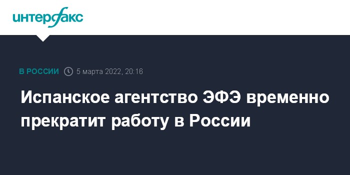 Москва. 5 марта. INTERFAX.RU - Испанское информационное агентство ЭФЭ объявило в субботу о временном прекращении работы в России.