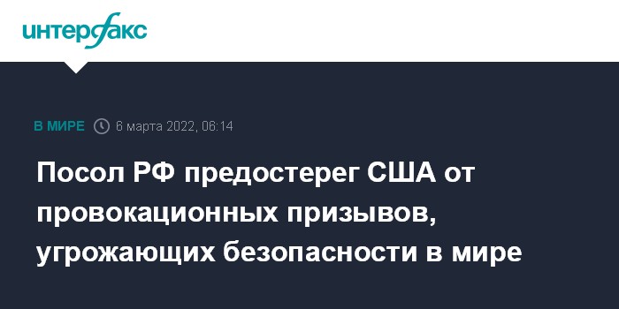 Посол РФ предостерег США от провокационных призывов, угрожающих безопасности в мире