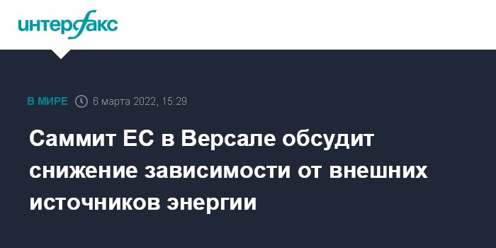 Саммит ЕС в Версале обсудит снижение зависимости от внешних источников энергии