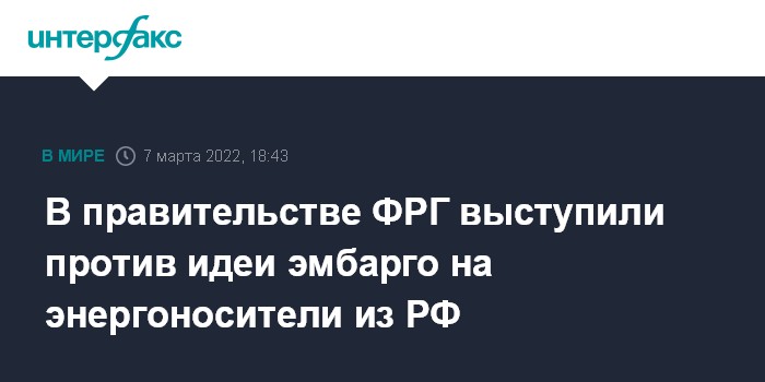В правительстве ФРГ выступили против идеи эмбарго на энергоносители из РФ