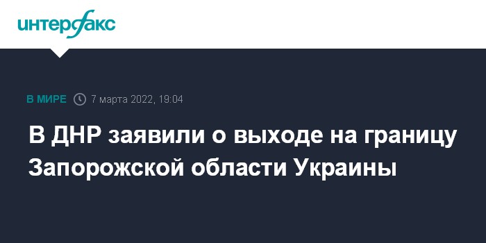 Москва. 7 марта. INTERFAX.RU - Силы ДНР вышли на границу Запорожской области Украины, сообщил в понедельник представитель народной милиции Донецкой народной республики Эдуард Басурин.