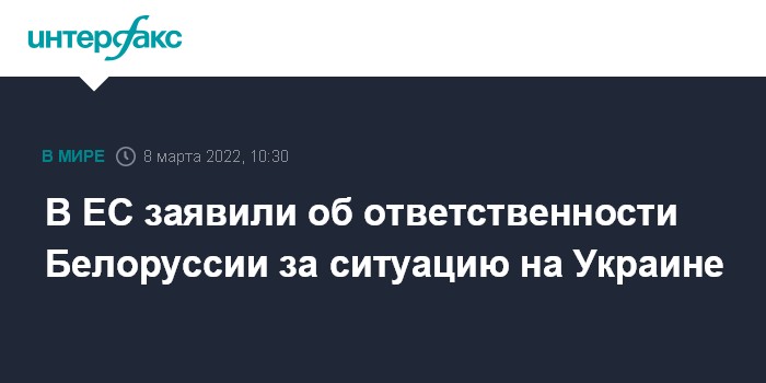 Москва. 8 марта. INTERFAX.RU - Евросоюз заявил, что Белоруссия должна нести полную ответственность за ситуацию на Украине.
