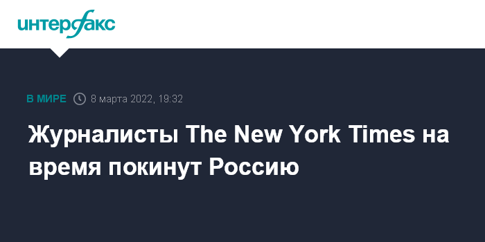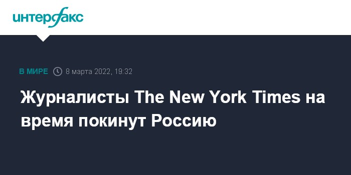Москва. 8 марта. INTERFAX.RU - Американская газета The New York Times решила на время вывезти из России своих журналистов в связи с новым законом о распространении фейковых новостей о Вооруженных силах РФ, сообщил заместитель главного редактора издания Клиффорд Леви.
