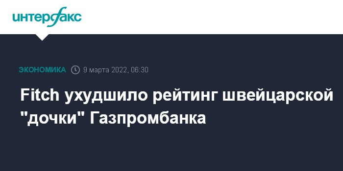 Fitch ухудшило рейтинг швейцарской "дочки" Газпромбанка