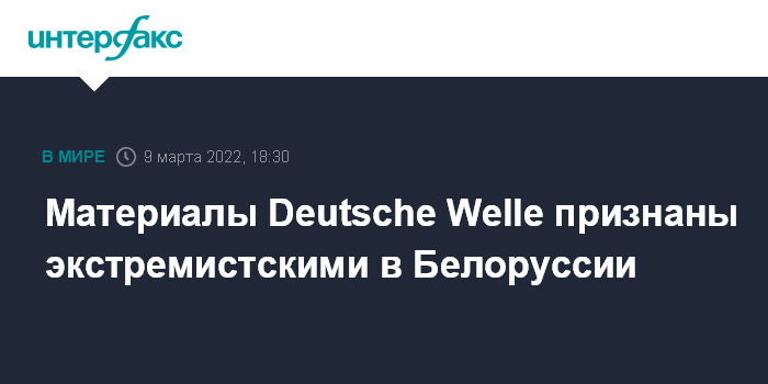 Москва. 9 марта. INTERFAX.RU - Продукция медиа-информационной сети Deutsche Welle (DW) в Белоруссии признана экстремистскими материалами, сообщили в одном из главков МВД Белоруссии.