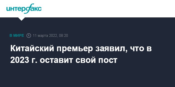Китайский премьер заявил, что в 2023 г. оставит свой пост