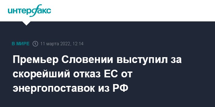 Премьер Словении выступил за скорейший отказ ЕС от энергопоставок из РФ