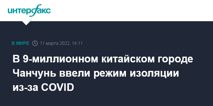 Москва. 11 марта. INTERFAX.RU - В китайском городе Чанчуне с населением 9 млн человек вводится карантин в связи с ситуацией с COVID-19, сообщает в пятницу Associated Press (AP).