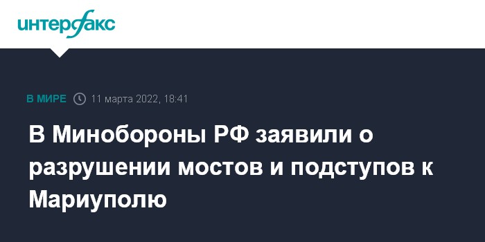 В Минобороны РФ заявили о разрушении мостов и подступов к Мариуполю