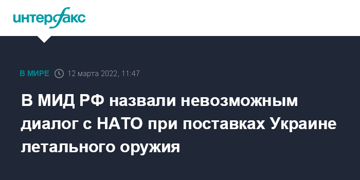В МИД РФ назвали невозможным диалог с НАТО при поставках Украине летального оружия