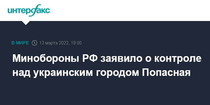 Москва. 13 марта. INTERFAX.RU - Силы ЛНР взяли под контроль город Попасная, сообщили в Минобороны России в воскресенье.