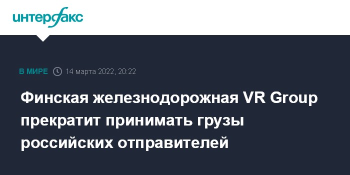 Москва. 14 марта. INTERFAX.RU - VR Group (железные дороги Финляндии) прекращают прием грузов от российских лизинговых компаний и грузоотправителей.