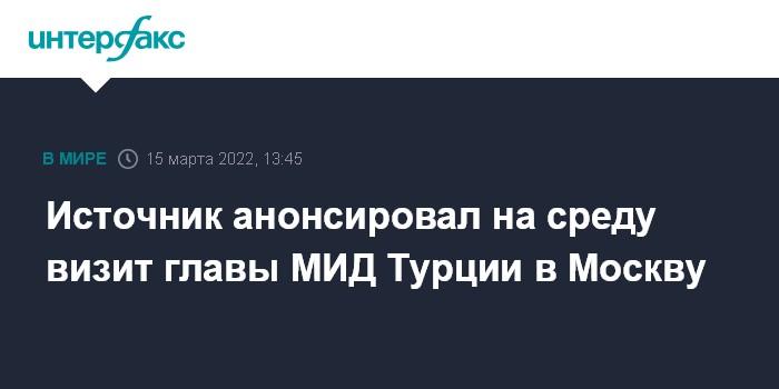 Москва. 15 марта. INTERFAX.RU - Глава МИД Турции Мевлют Чавушоглу 16 марта посетит Москву, запланирована встреча с российским министром Сергеем Лавровым, сообщил журналистам осведомленный источник.